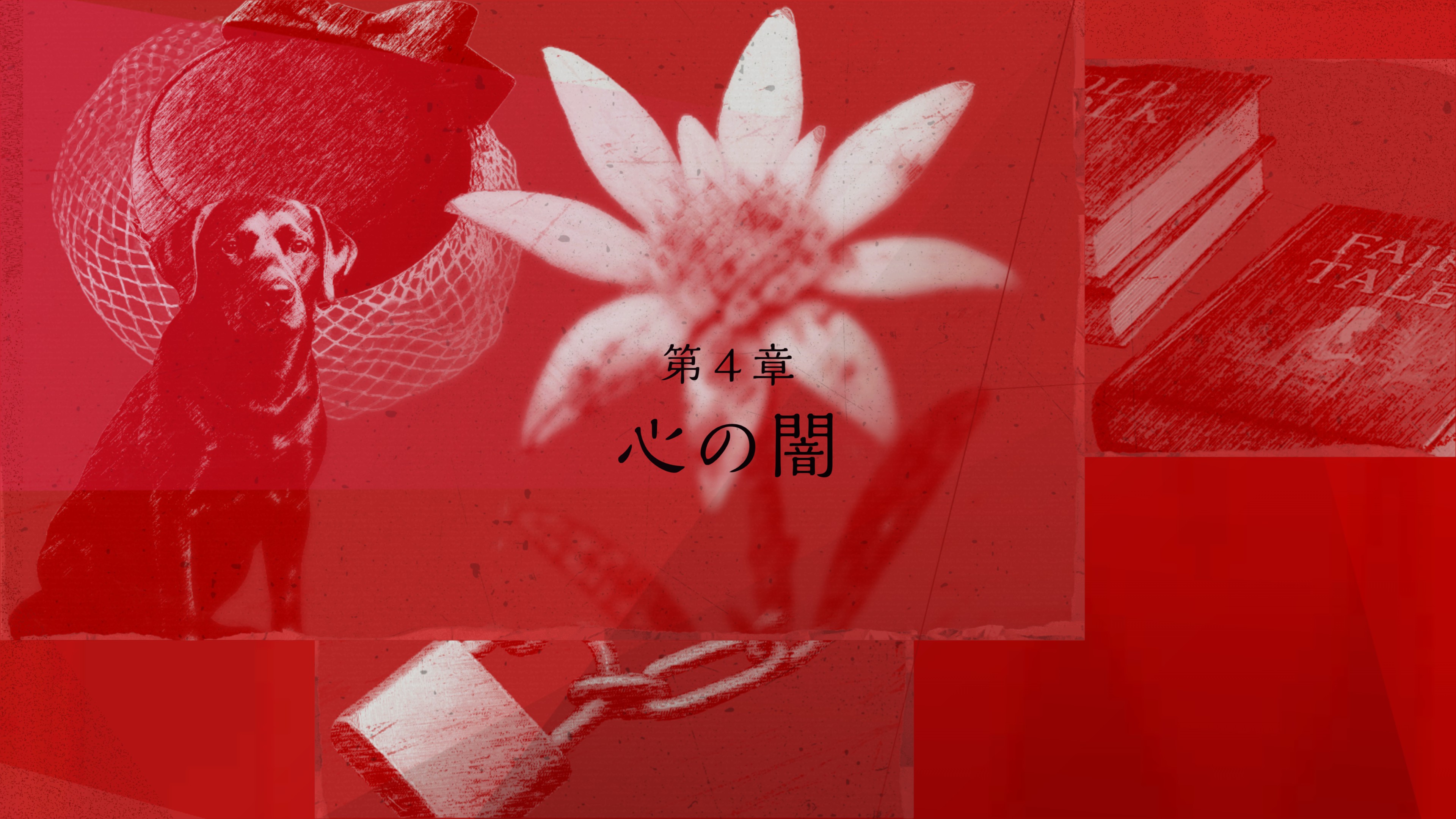 エーデルワイス、赤いドレス、鎖と鍵、童話の本、祖母の杖、ランプ