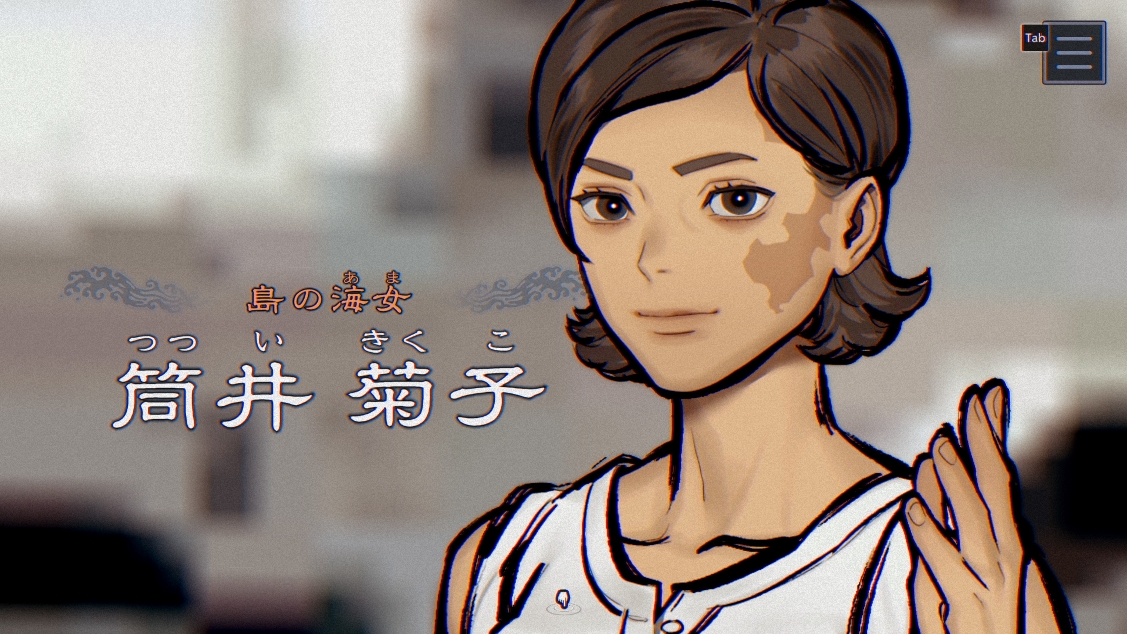 菊子→狂濤の呪い×2、さっきの荷物×2、手鏡を入手、かめし丸×2、海女の仕事×2、スコアが2000Pt以上だと、《なめどり#05》を入手、素潜り漁のコツ×2、外国人観光客×2、行方不明の海女×2、会話終わり