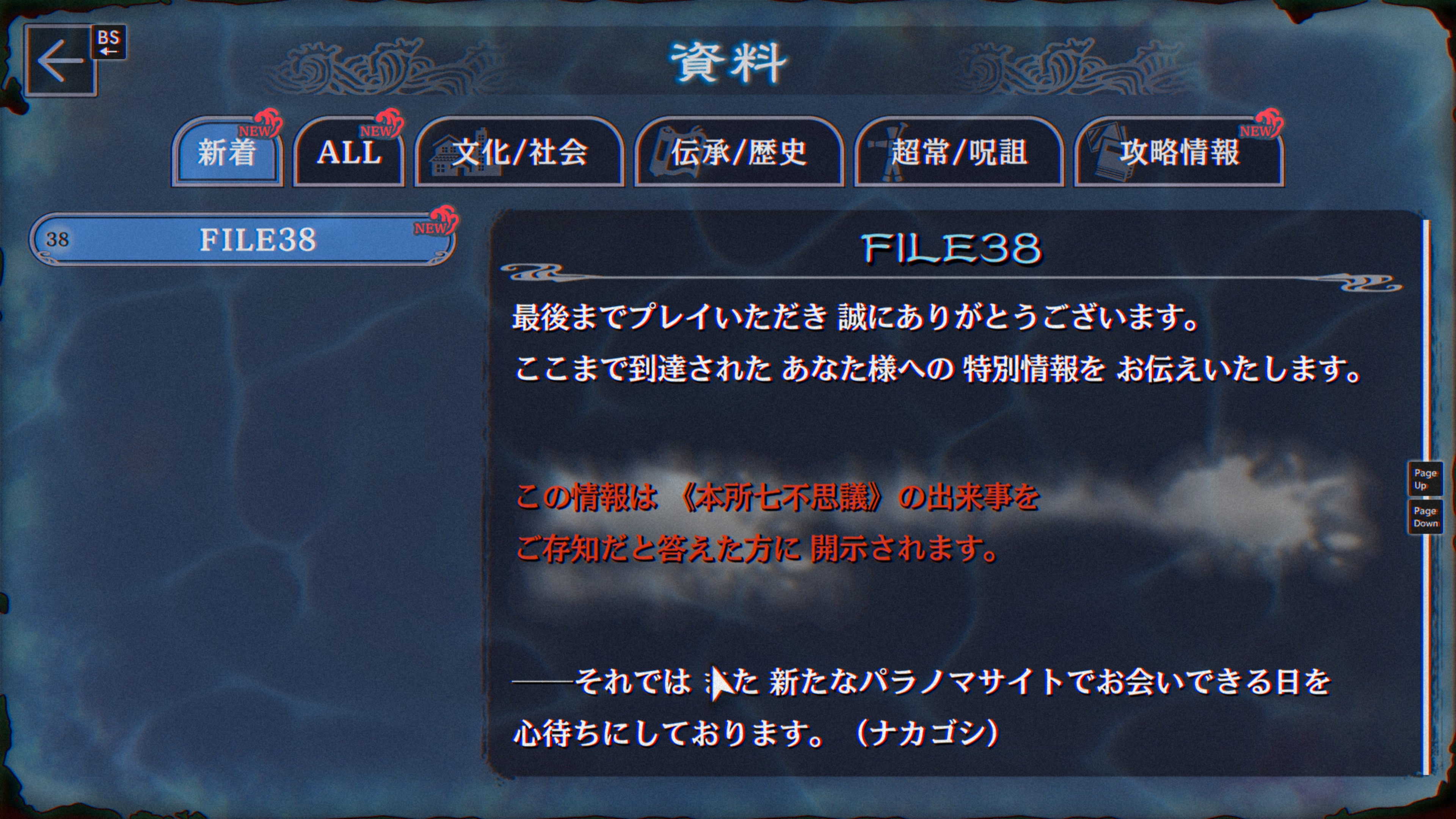 資料38は前口上で案内人との選択肢 知らないを選ぶと、下記画像のように表示されない