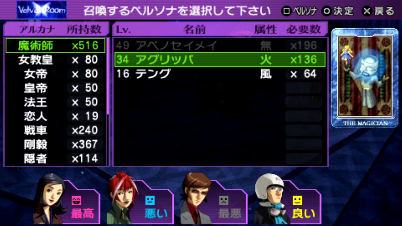エネミー: 月リリムLv.33、運命ワニュウドウLv.33、魔術師アグリッパLv.34、悪魔ダイロクテンマオウLv.34、剛毅ピュートーンLv.35、塔ショゴスLv.35、恋人サトゥロスLv.36、審判パワーLv.36、人間天誅軍・叢雲Lv.37