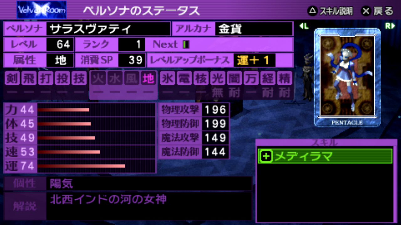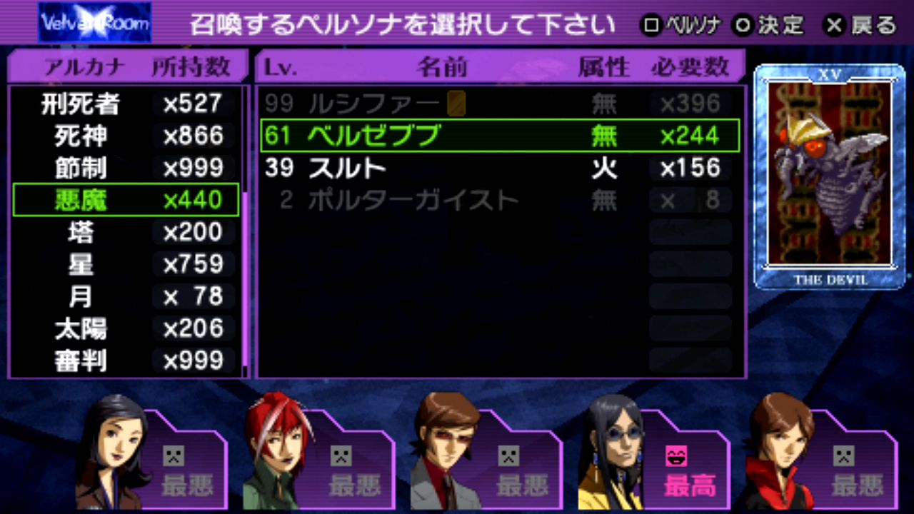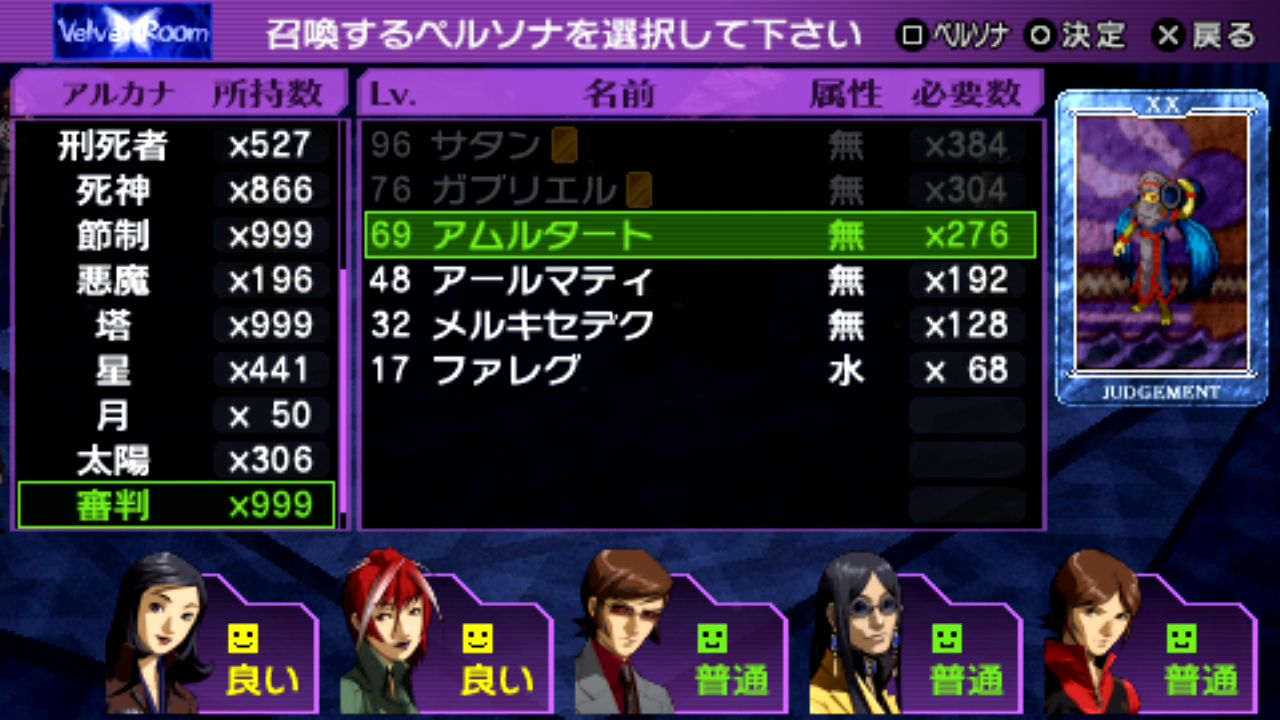 魔法系を反射・無効のペルソナで組めるとかなり楽。到達Lv.69。