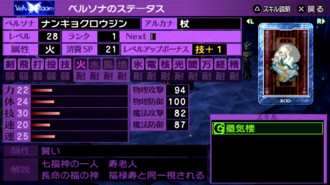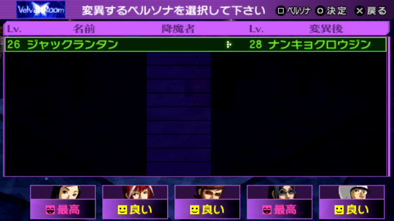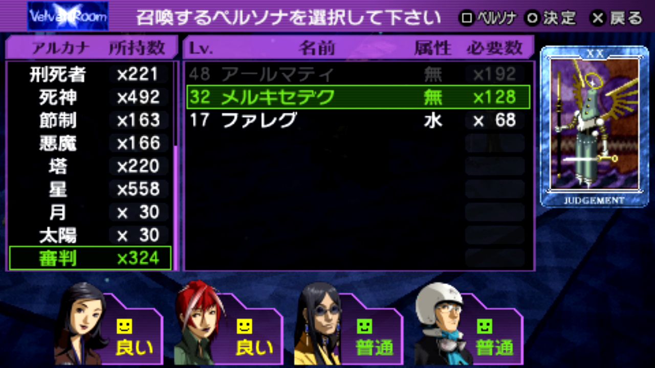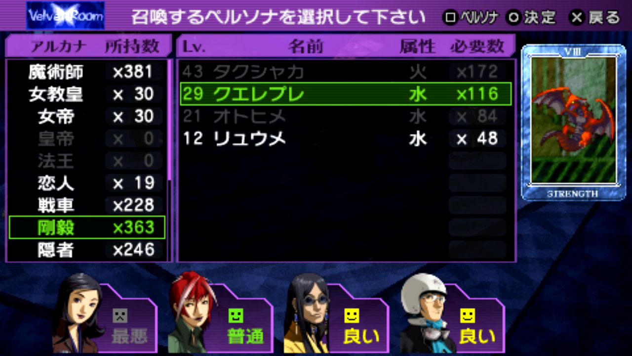 法王シャカLv.29、剛毅クエレプレLv.29、星ケンレンタイショウLv.30、審判メルキセデクLv.32、隠者ビャッコLv.33