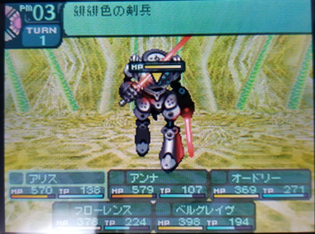 ドロップ: 金属片、ウーツ銀のカケラ 、緋々色金の剣片(3ターン以内で倒す) (素材 →緋々色金の光剣 | 剣 攻撃+169 STR+5 TEC+5)