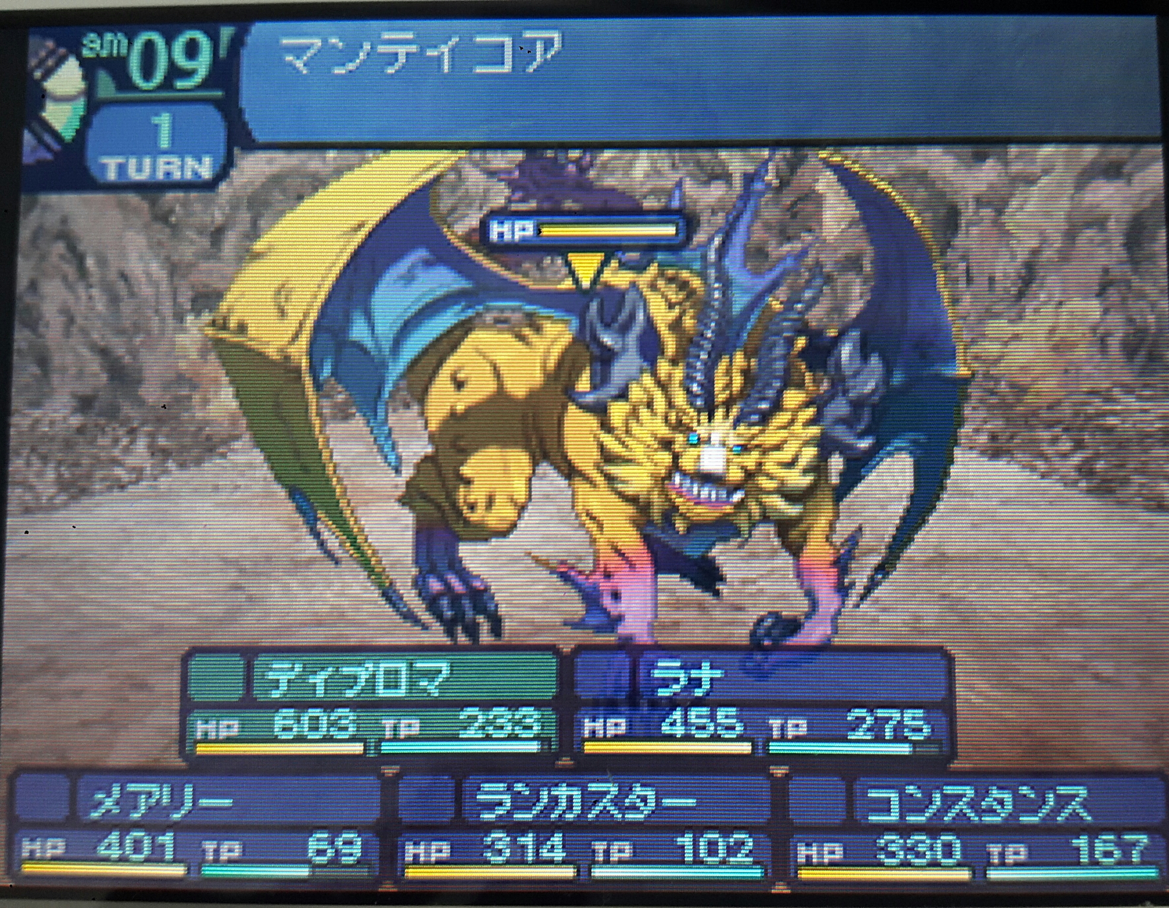 HP8500、スキル: ポイズンテイル(全体毒、毒163)、魔の子守唄(眠りorテラー)、ダークネスコイル(呪いor盲目)、オートガード(自動で半分みたいなのも持っている)。