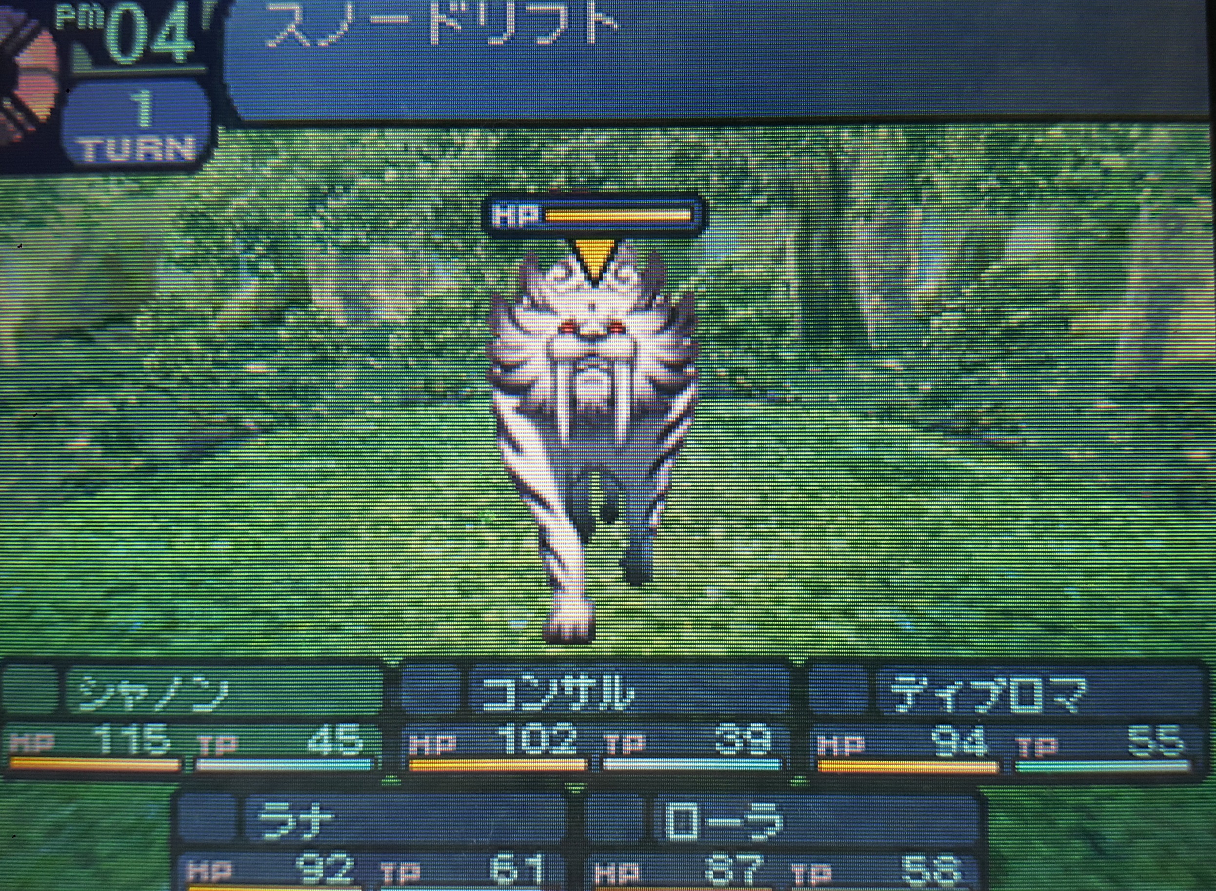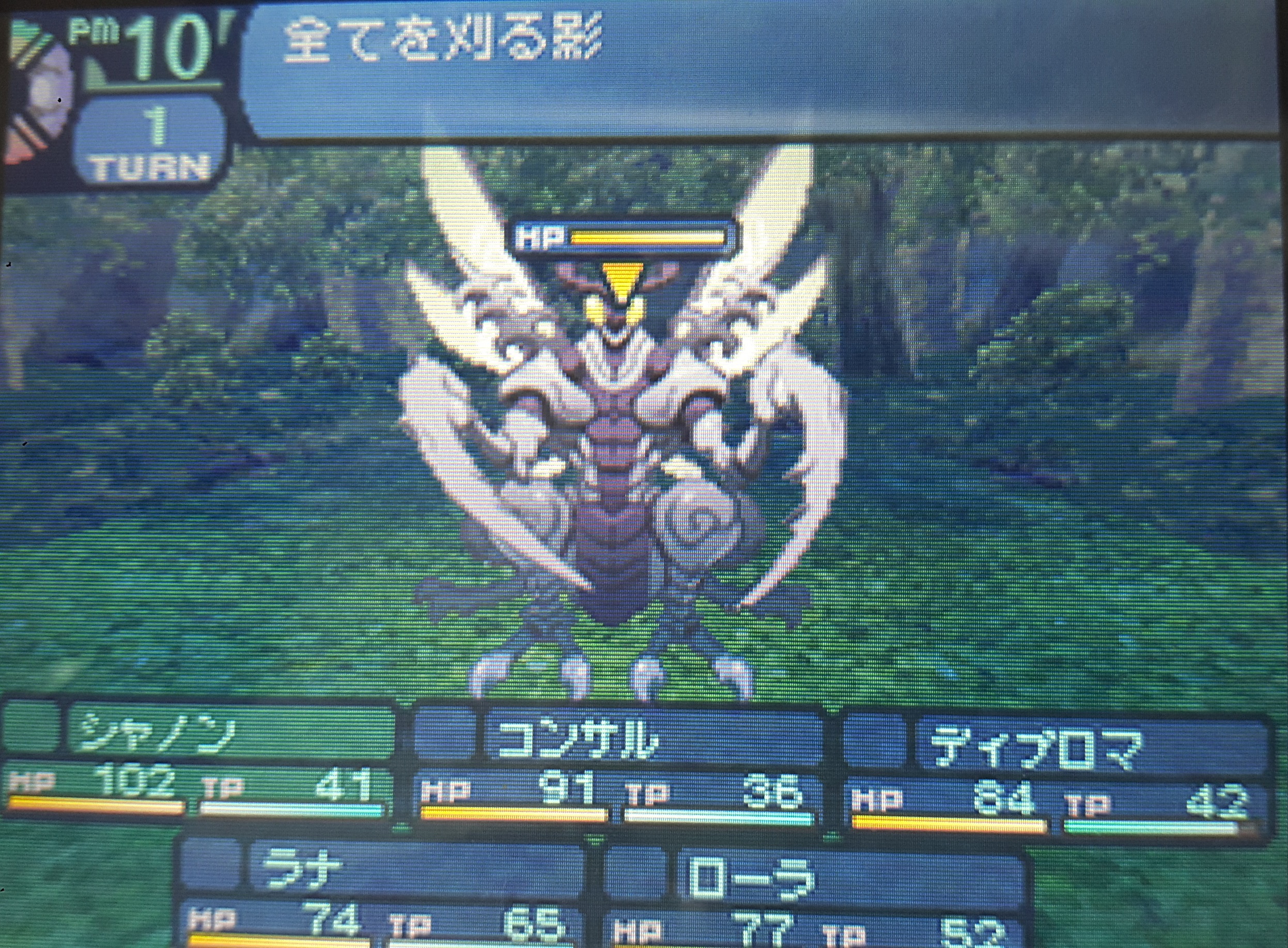 第1層ボス。攻撃力はかなり高め。TP切れ対策で、アムリタはいくつか用意しました。手が開くパラかダンに使わせます。