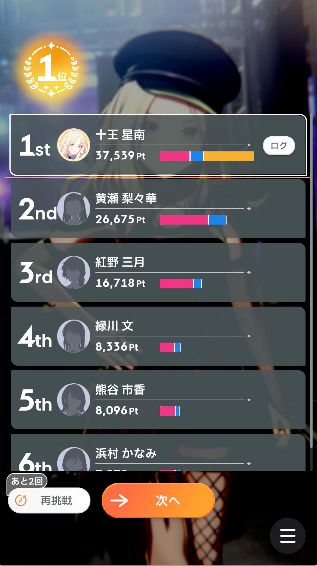 → 再挑戦でランク下げてPOP Fairに。1位には14000Pt前後。29984Pt。あれもしかして勝てたか?