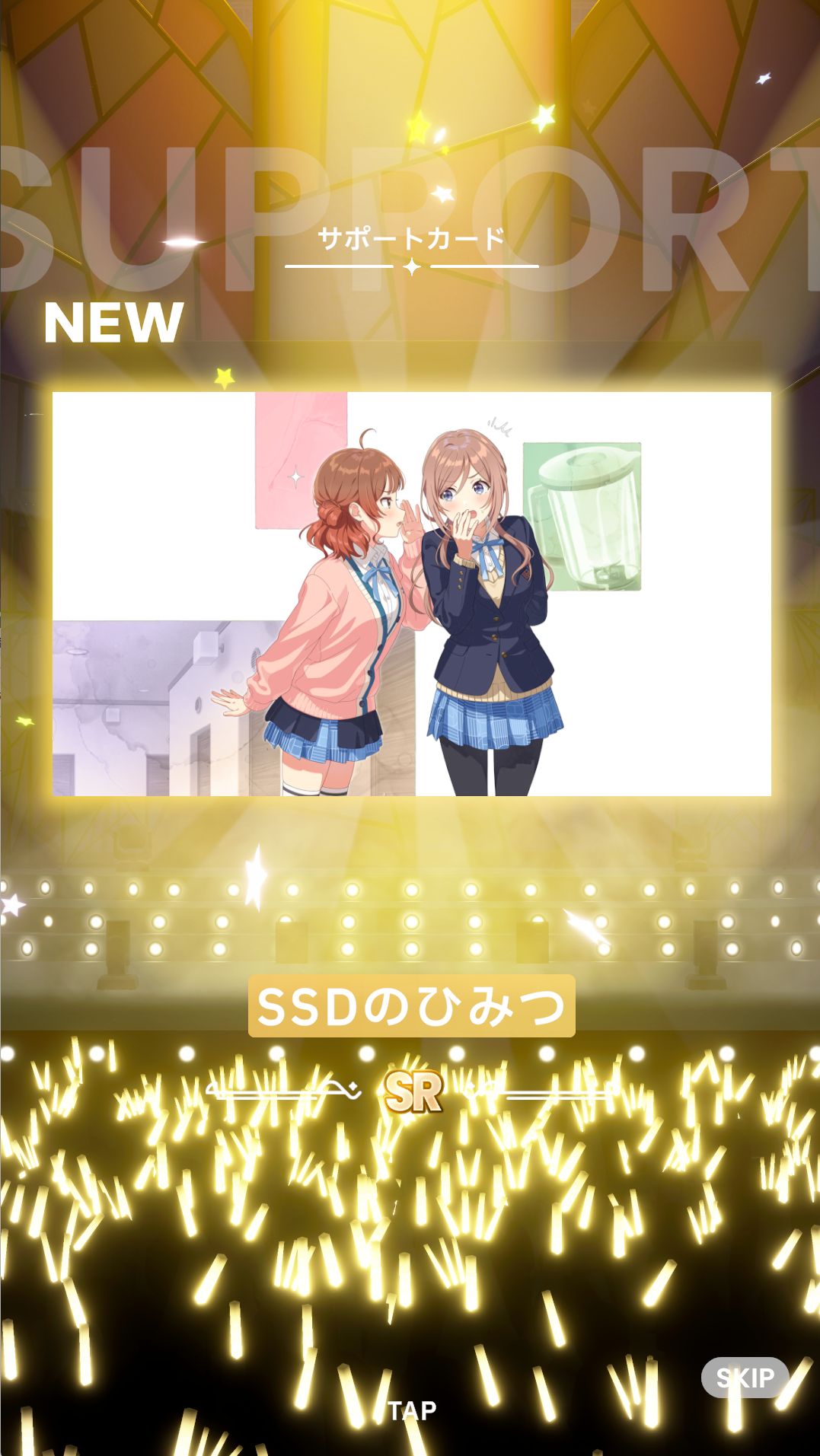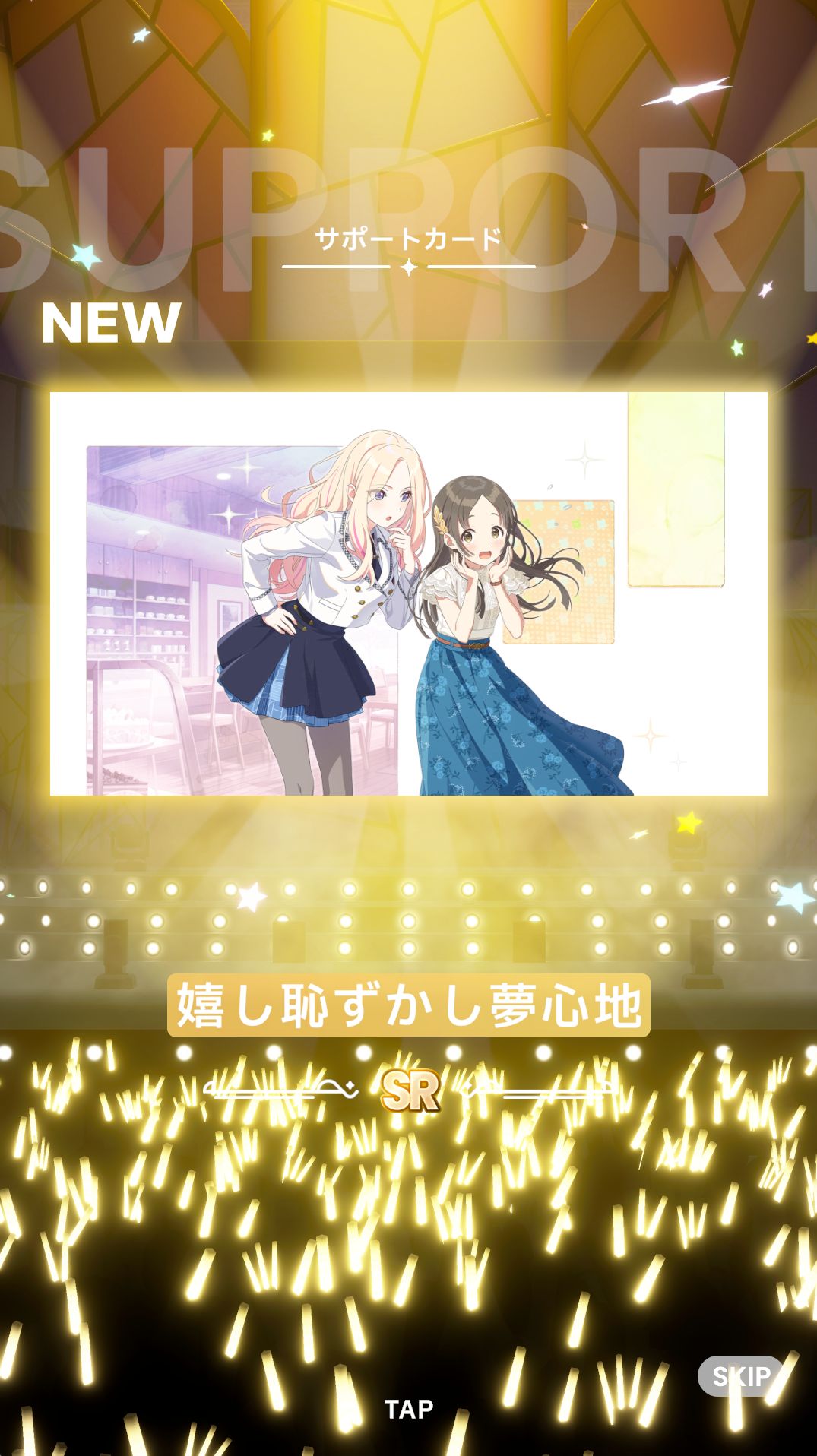 SR嬉し恥ずかし夢心地、SR[一番星]十王星南、SR[カワイイ♡はじめました]藤田ことね、R念入りにストレッチ、R[初恋]篠澤広、SRSSDのひみつ、R[学園生活]篠澤広、Rいめーじとれにーんぐ、Rわたしのペースで、SSR[36℃ U・B・U]姫崎莉波