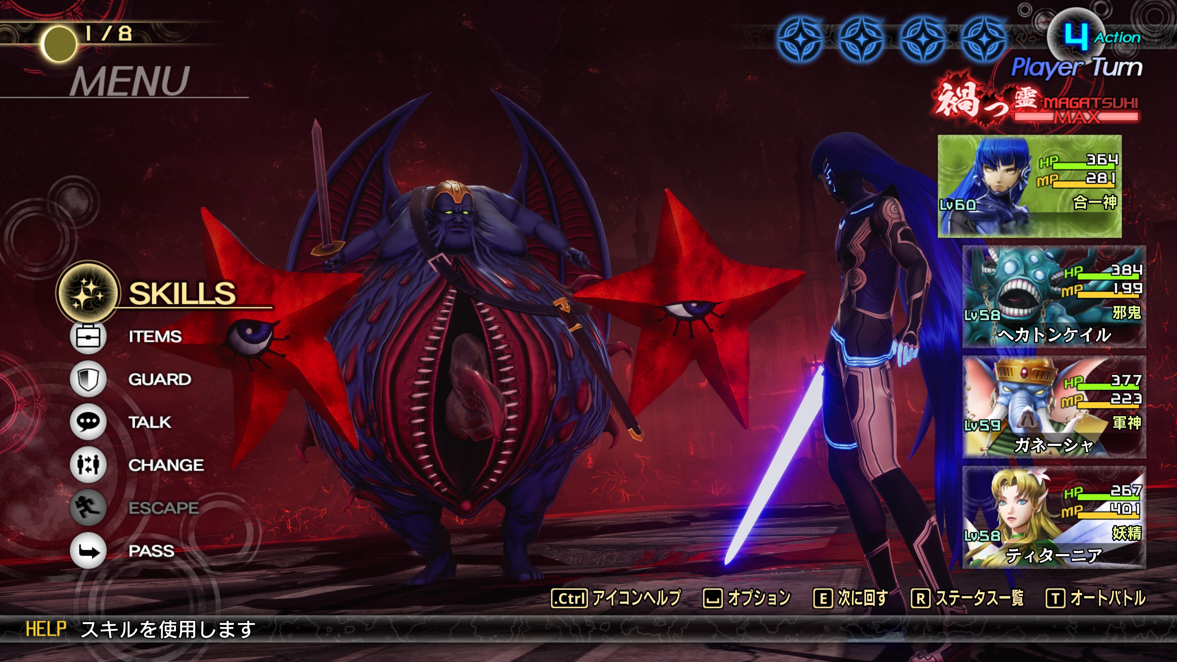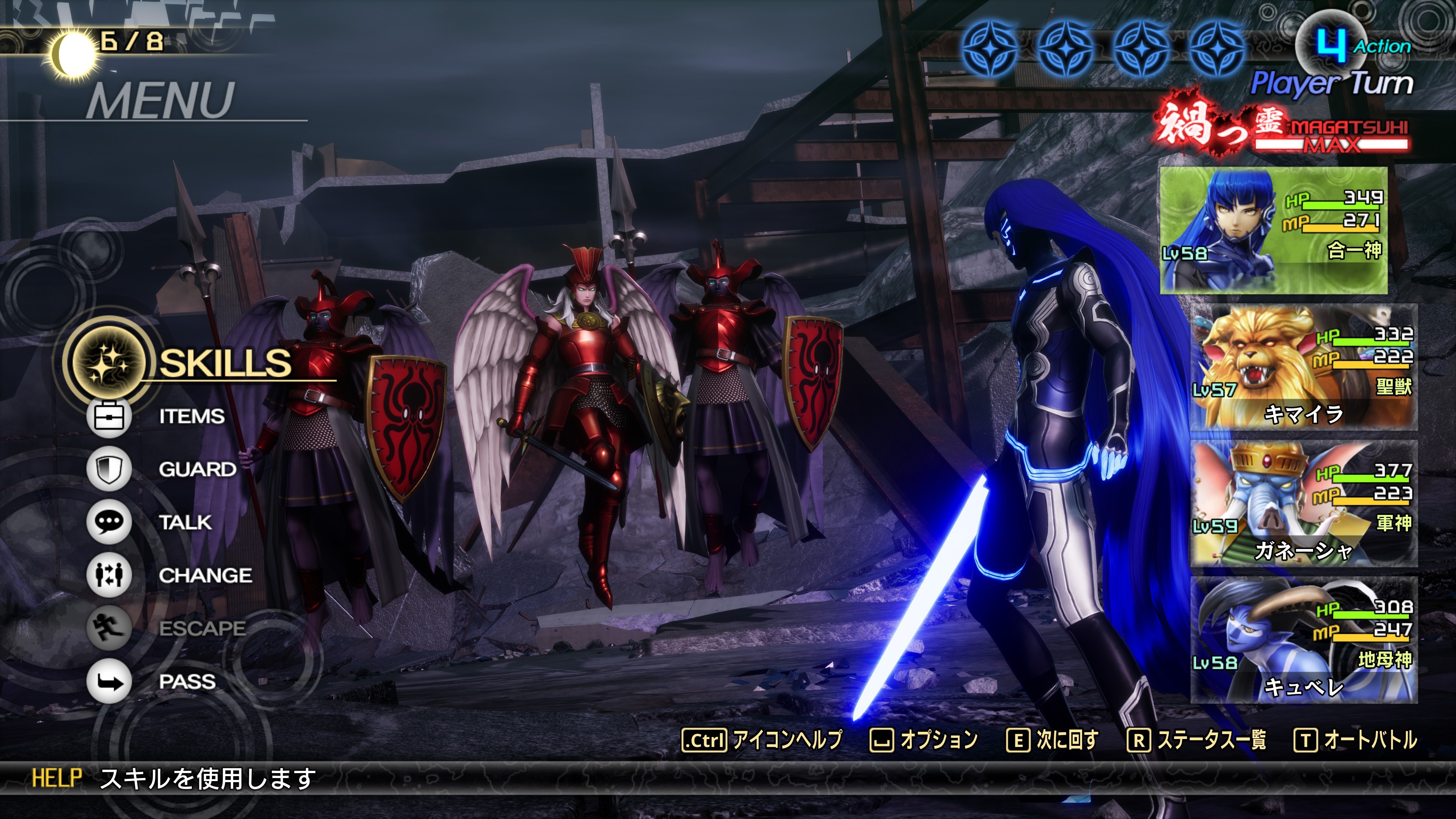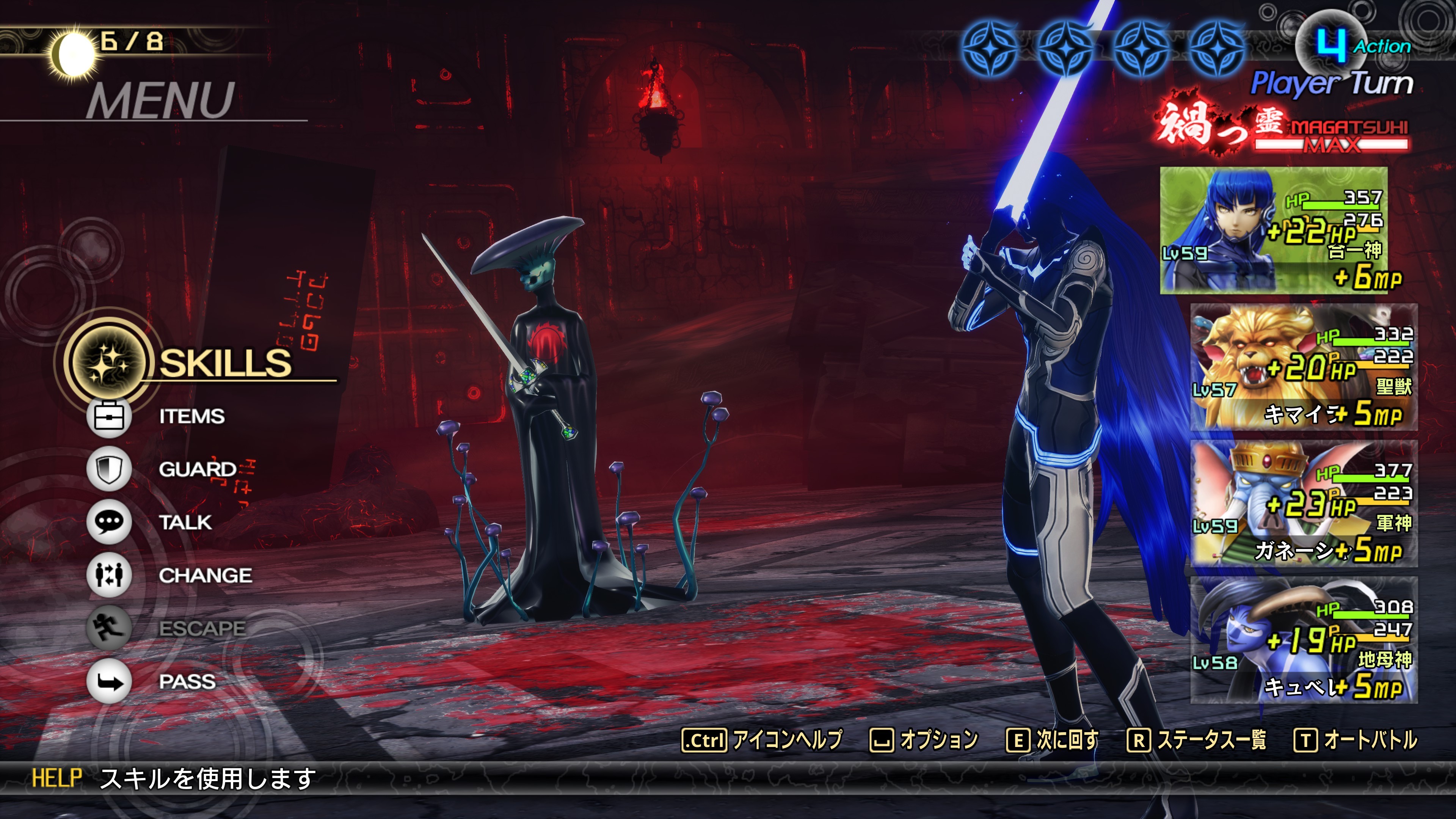 4回攻撃で強敵。マガツヒを使った後は、マハムドオンを闇障石でシャットアウトし、攻撃回数を減らす。到達Lv59。